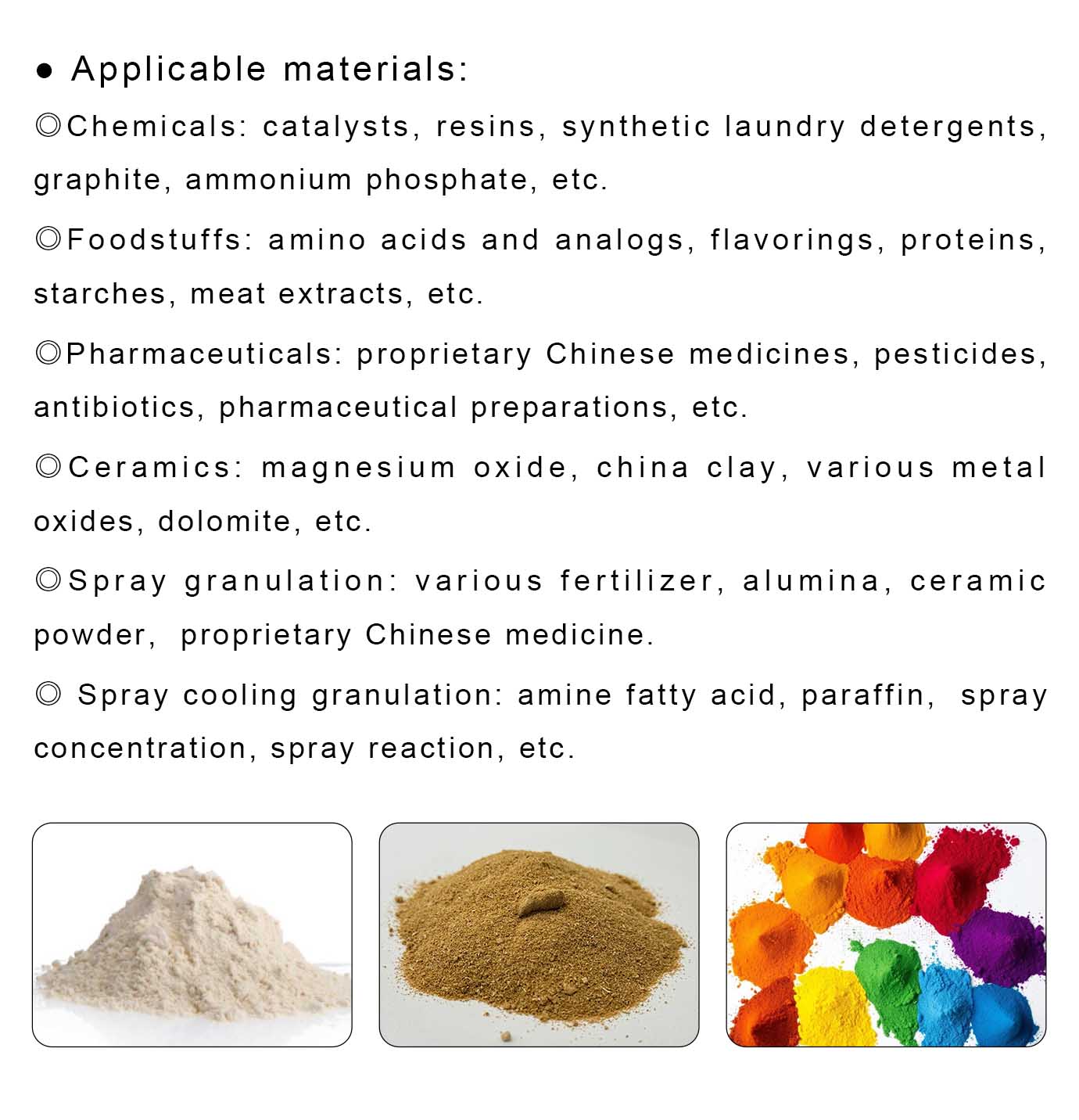 Allows adjustment of pressure, flow rate, and nozzle size to accommodate different materials and product specifications. The pressure spray dryer equipment provides versatility for various industrial applications and production requirements.
